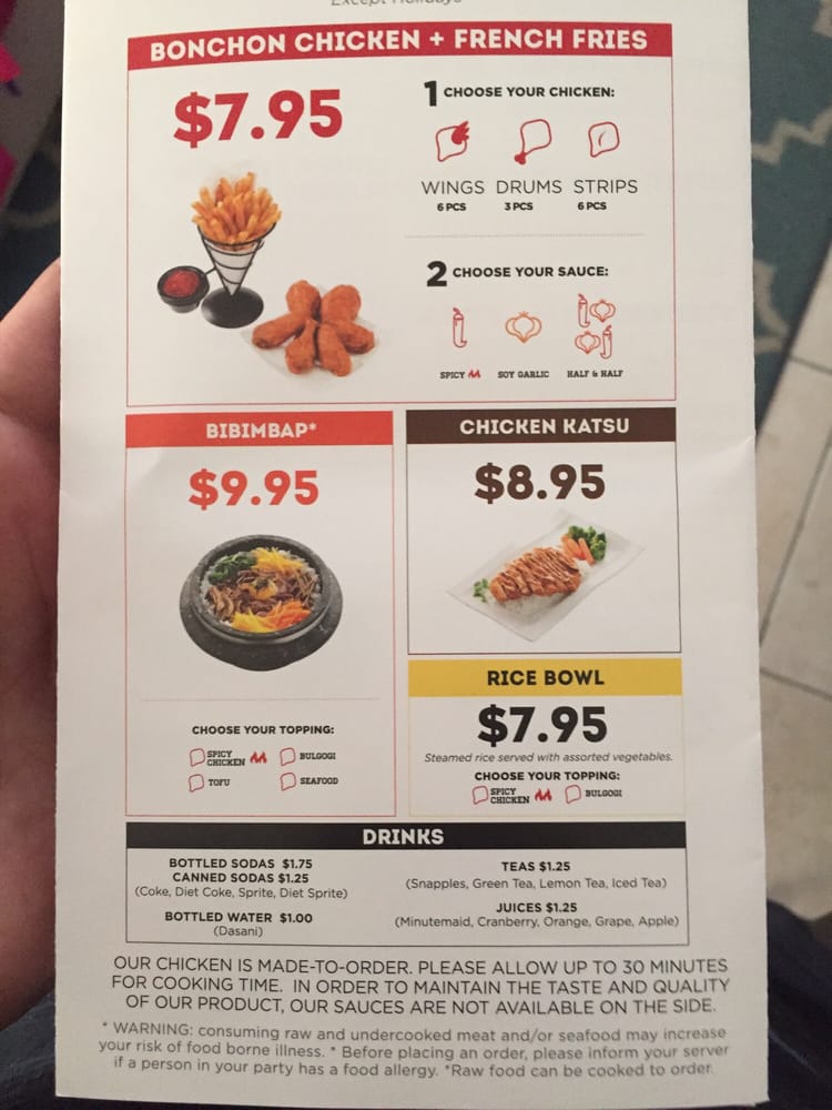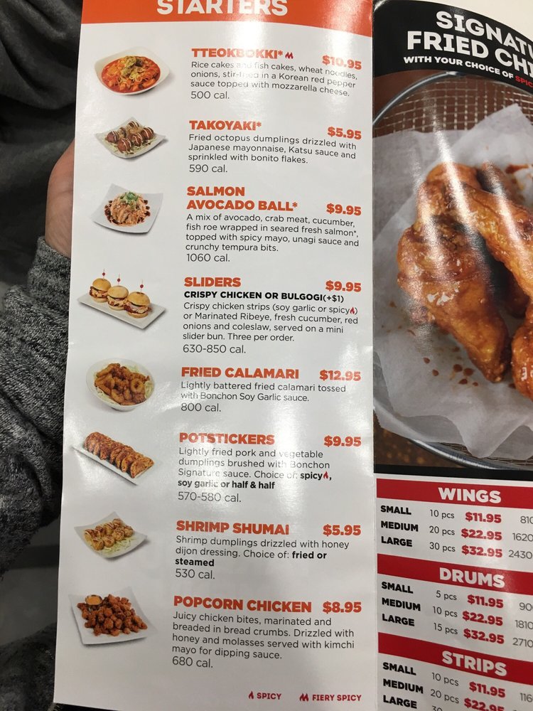 The menu offers a tantalizing array of dishes that are certain to satisfy any palate. Highlights include the YumDrum Trio featuring three crispy drumsticks paired with fries and a Korean donut, and the Cheesy Bulgogi Rice—a comforting bowl of bulgogi topped with melted mozzarella and spicy mayo. For those craving variety, the Seoul Sampler serves an assortment of favorites, feeding 2-3 with a delightful mix that embodies Bonchon’s signature sauces.