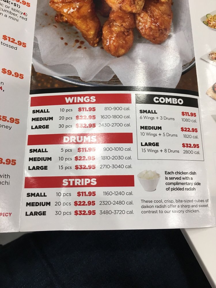 Wings & Drumsticks, double fried with your choice of sauce. Complimentary side of pickled radish or coleslaw.